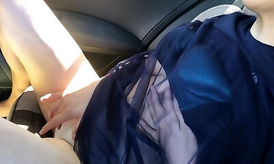 Unbelievable enrapturing blonde girl gives a car blowjob