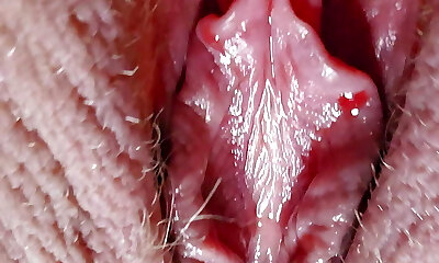 Extreme close up pussy and beautiful clit! Girl shows her pink wet creamy labia Ideal orgasm