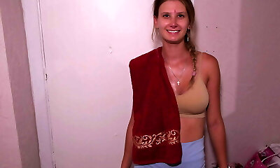 New girl with huge natural tits tries...