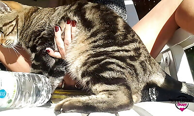 Nicole Love in jeans jerking passionately outdoor