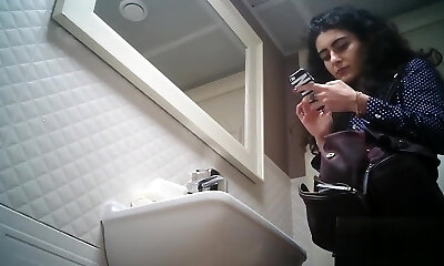 Hairy pussy of a curvy white chick filmed in the dirty toilet