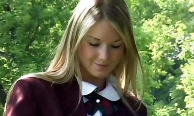 Delightful college girl poses seductively for an erotic outdoors solo shoot