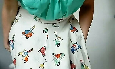 Brassy blonde strips to wank in vintage panties nylon high-heeled shoes