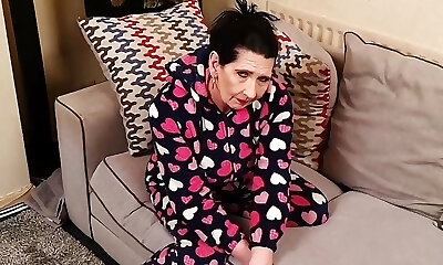 Brit masturbating GILF with real saggy tits is a steaming cock teaser