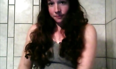 Ugly and slim wanker Bonnie wanks in the bathroom