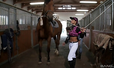 Horny brunette with adorable rack Aila Donovan is into railing cock