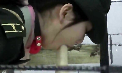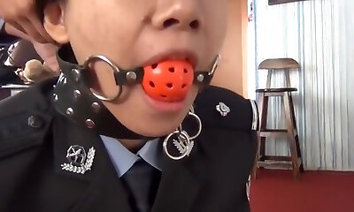 Chinese secretaries in white shirts are thoroughly ball-gagged