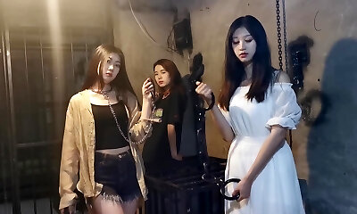 Chinese Ultra-cutie In Metal Bondage Outdoors