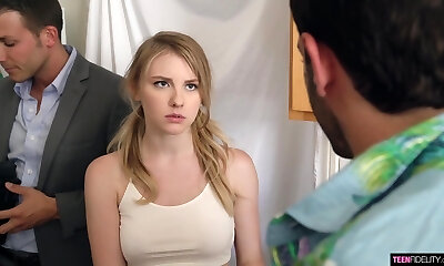 Fair haired filthy teen with pigtails blows smelly penis of her older professor