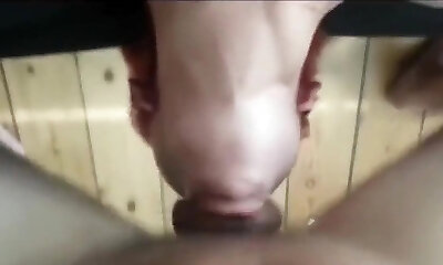 Nerdy girl sucks wood and gets mouth full of cum Point Of View