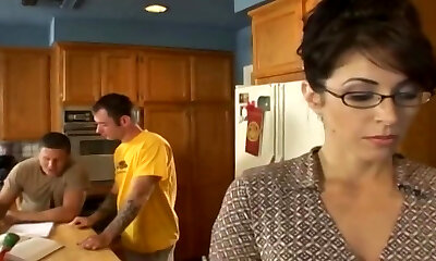 Lusty Brunette Milf In Lured Her Neighbor In The Kitchen