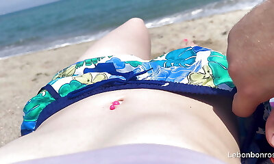 mostrando sus bragas y cameltoe en un rincón de la playa