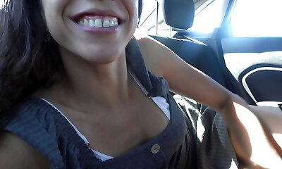 chica adolescente con culo perfecto montando polla en el coche