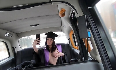 big nose unexperienced stunner pounds in fake taxi