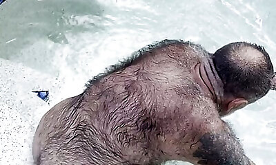 casi quedar atrapado duchas públicas maravilloso hombre peludo