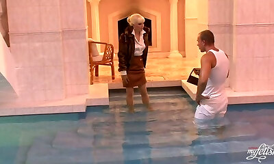sizzling ash - blonde babe follando en la piscina