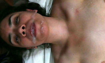Cum falling from her lips! Lovely jizz play!