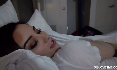 Lustful sister in law Aria Lee plays with stepbrother's fuck-stick before falling asleep