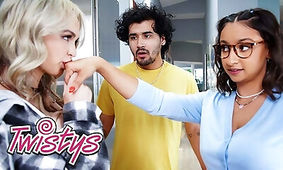 TWISTYS - Lilly Bell Throws Her Beau Outside To Show Hailey Rose How Good Are Her Licking Skills