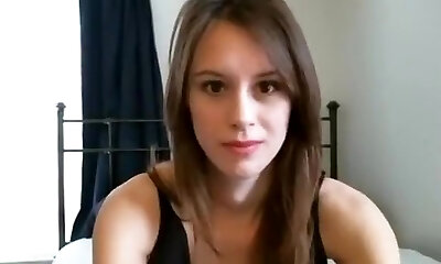 Super-cute amateur brunette naughty in solo jerking show on camera